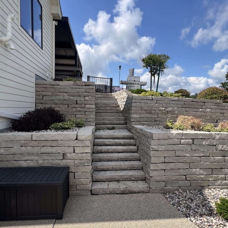 At Ross Landcare, we design and build durable retaining walls that elevate your outdoor space—functionally and aesthetically. Proudly serving Caledonia, Wisconsin and nearby communities like Mount Pleasant, Franksville, Franklin, and Oak Creek, we help homeowners tackle soil erosion, improve drainage, and create beautiful, usable landscapes.
